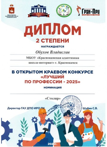 Диплом 2 степени в открытом краевом конкурсе "Лучший по профессии - 2025"