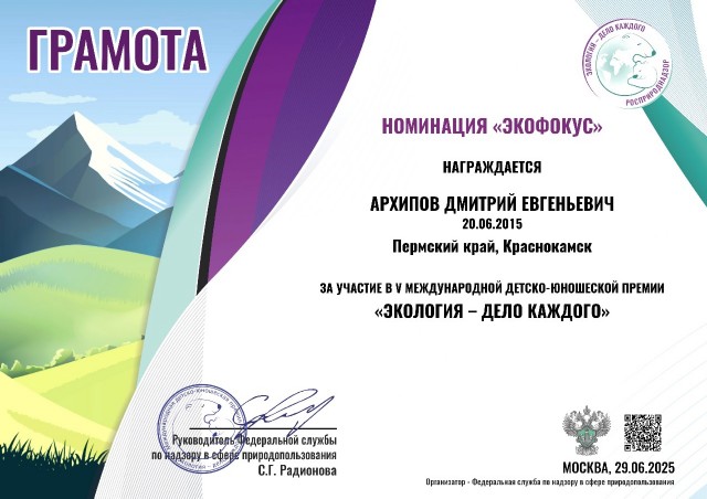 Диплом победителю региональной олимпиады "Пермский медвежонок - 2025"
