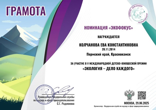 Сертификат за участие в региональной олимпиаде "Пермский медвежонок - 2025"